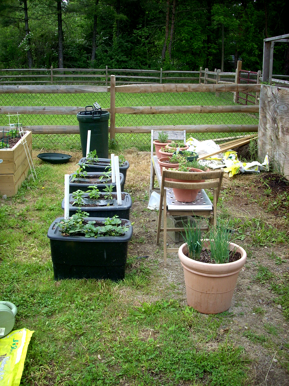 And here are some planters with herbs, and some homemade earth boxes I made last year.