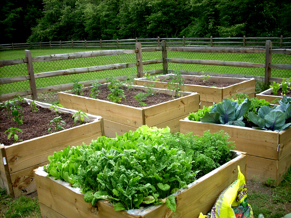 As a follow-up to the post where I built a bunch of raised boxes for the veggie garden. Here’s the garden today: